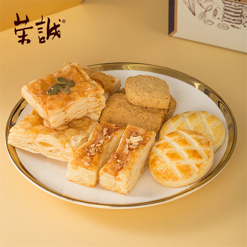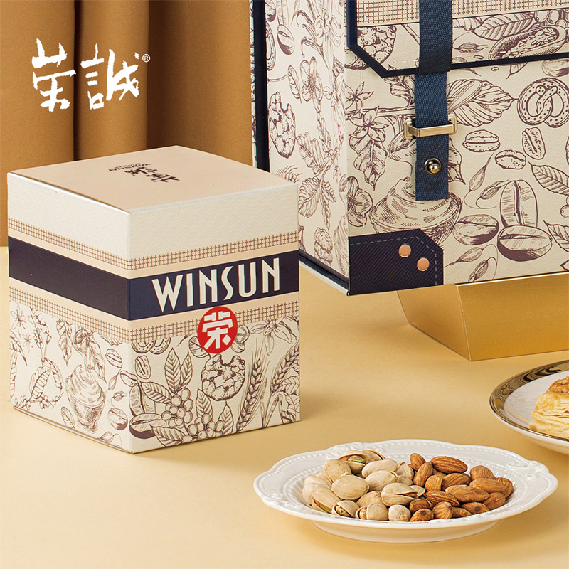 【編 碼】 CGZ2407 【條形碼】 6925755536236 【尺 寸】 34x15.3x26cm 【凈含量】 920g 【規(guī) 格】 920gx4盒/箱 【內(nèi)容物】  100g鹽焗巴旦木果仁x1,100g開心果x1,18g燕麥方塊脆x15,10g松塔x8,20g腰果千層酥x2,20g椰絲千層酥x2,20g南瓜籽千層酥x2,25g芒果味軟心格子西餅x3,25g生椰拿鐵軟心格子西餅x2,25g榴蓮味軟心格子西餅x2,25g海鹽檸檬味軟心格子西餅x3