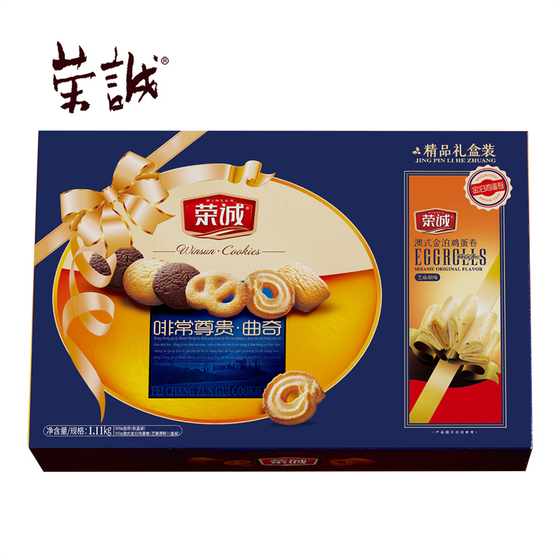 【編 碼】 CGZ1902 【條形碼】 6925755533747 【尺 寸】 44.8x30x8.7cm 【凈含量】 1110g 【規(guī) 格】 1110gx6盒/箱 【內(nèi)容物】 908g榮誠啡常尊貴曲奇x1,202g澳式金泊雞蛋卷(芝麻原味)x1