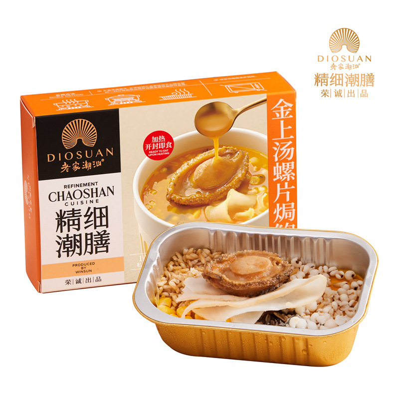 【編 碼】 JXCS2406 【條形碼】 6925755536052 【尺 寸】 16.3x4.2x11.3cm 【凈含量】 225g 【規(guī) 格】 225gx24盒/箱 【內(nèi)容物】 金上湯螺片焗鮑魚 225gx1