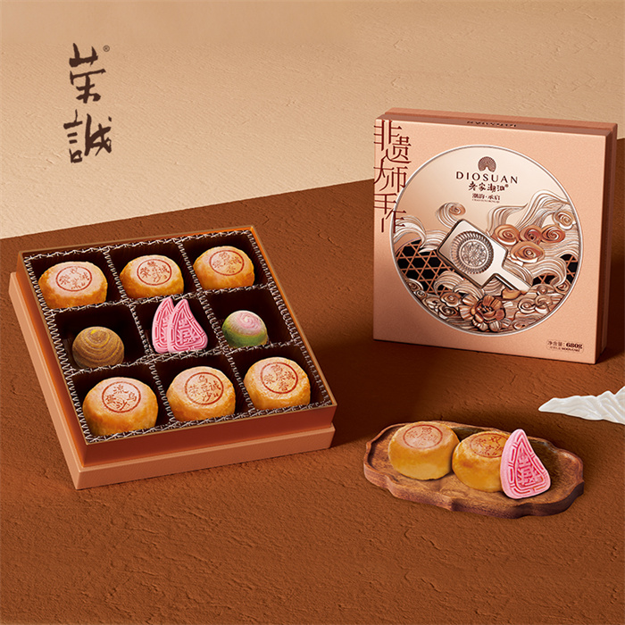 80g潮式雙烹月餅x1,80g潮式綠豆沙月餅x1,80g潮式鴨屎香茶月餅x2,80g潮式烏豆沙蛋黃流沙月餅x1 ,80g潮式烏豆沙月餅x1,70g潮式豆沙生椰拿鐵酥皮月餅x1,70g潮式粒粒紅豆沙芝士酥皮月餅x1,30g潮汕豆蓉山楂蔓越莓月餅x2