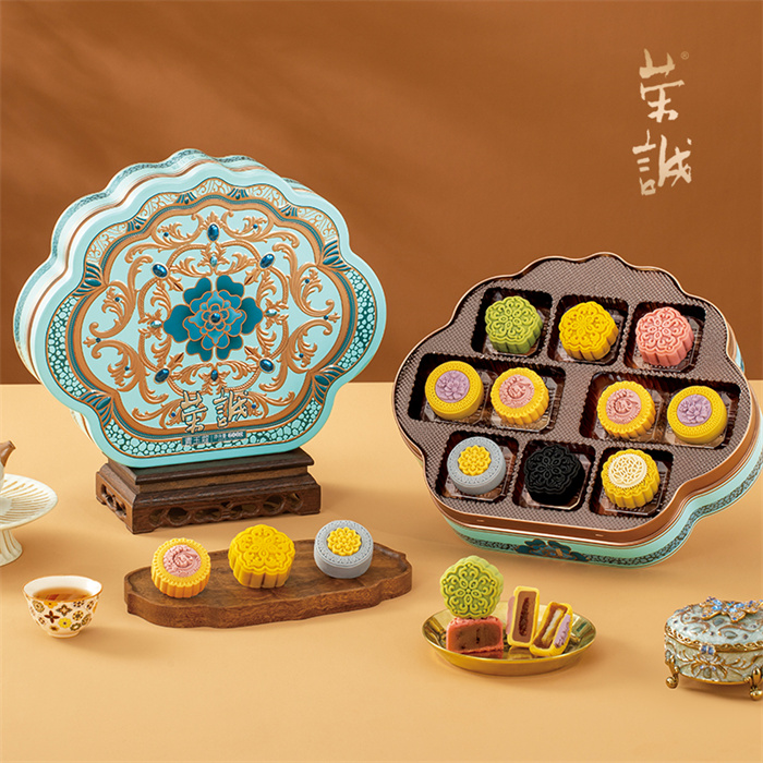 60g桃山皮月餅(雪媚娘檸檬卡曼橘)x2,60g桃山皮月餅(豆蓉香橙檸檬)x2,60g桃山皮月餅(五黑腰果)x1,60g桃山皮月餅(五黑巴旦木)x1,60g紅茶桂圓月餅 x1,60g豆蓉斑斕月餅x1,60g豆乳黑麥月餅x1,60g蛋黃白蓮蓉月餅x1